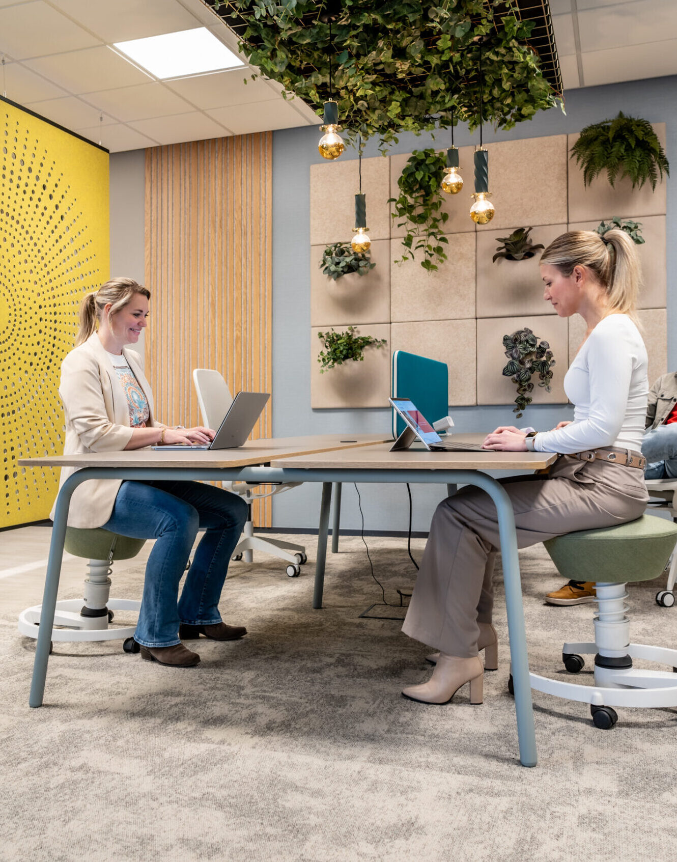 Een plek waar ontmoeten, samenwerken, creativiteit en een gezonde werkhouding samenkomen — precies zoals je dat ziet in ons eigen inspiratiehuis.