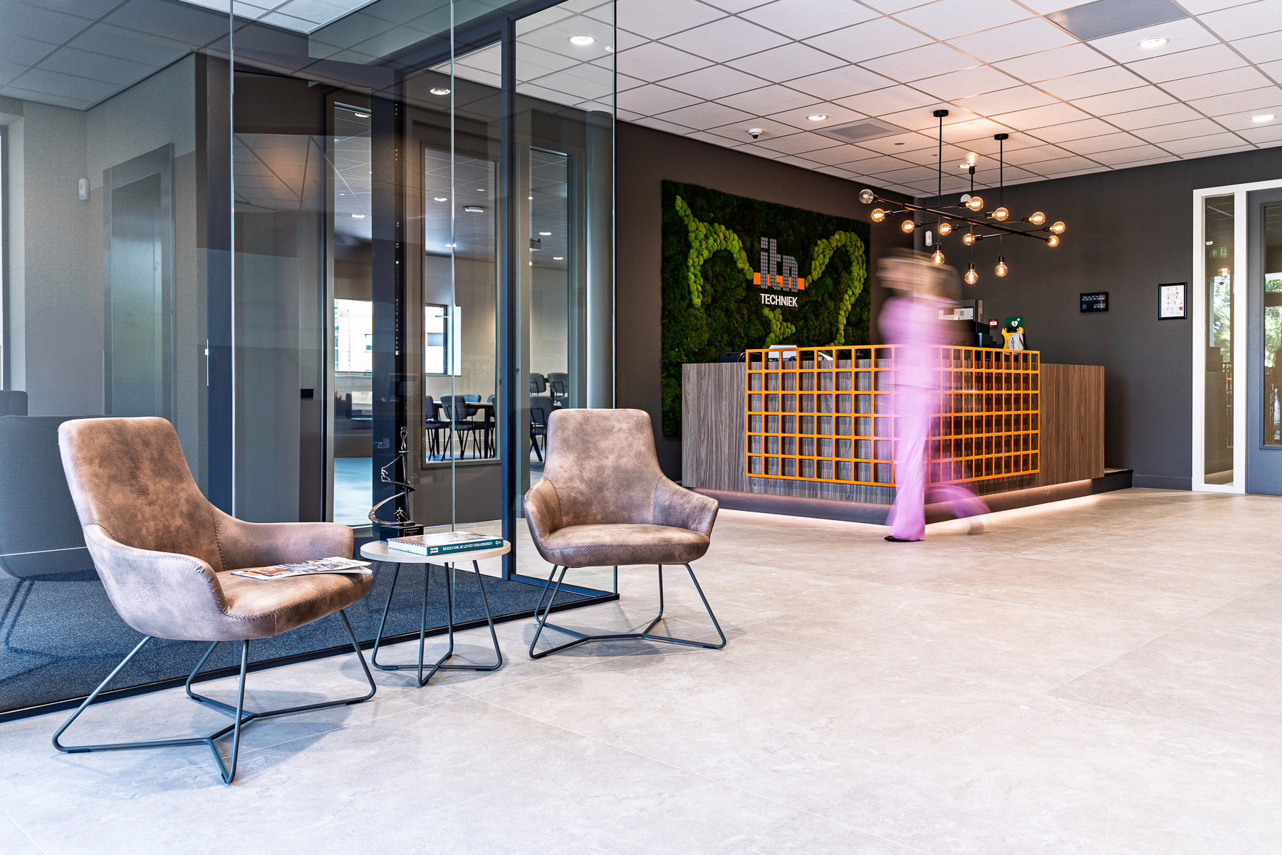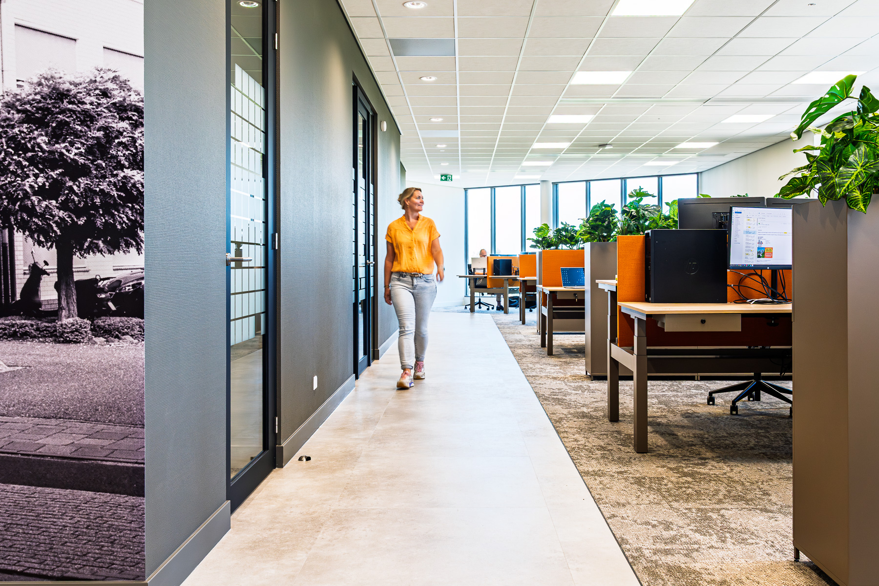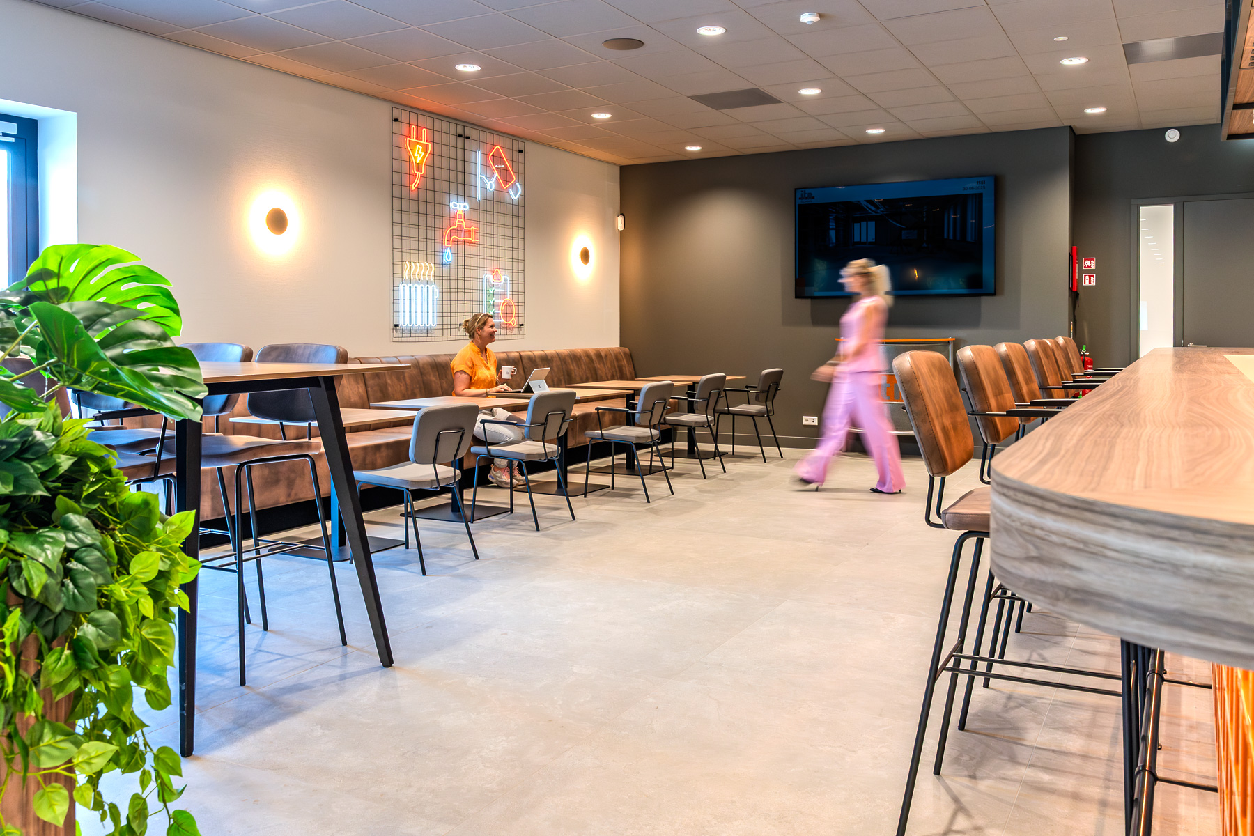De werkplekken combineren comfort en stijl met ergonomische zit-sta bureaus en groene accenten. In de vergaderruimtes en coffee break zones zorgen afwisselende zitplekken voor een ontspannen sfeer. De kantine ontwikkelde zich tot een gezellig bedrijfsrestaurant, ideaal voor een smakelijke lunch, een goede kop koffie of een borrel met collega’s