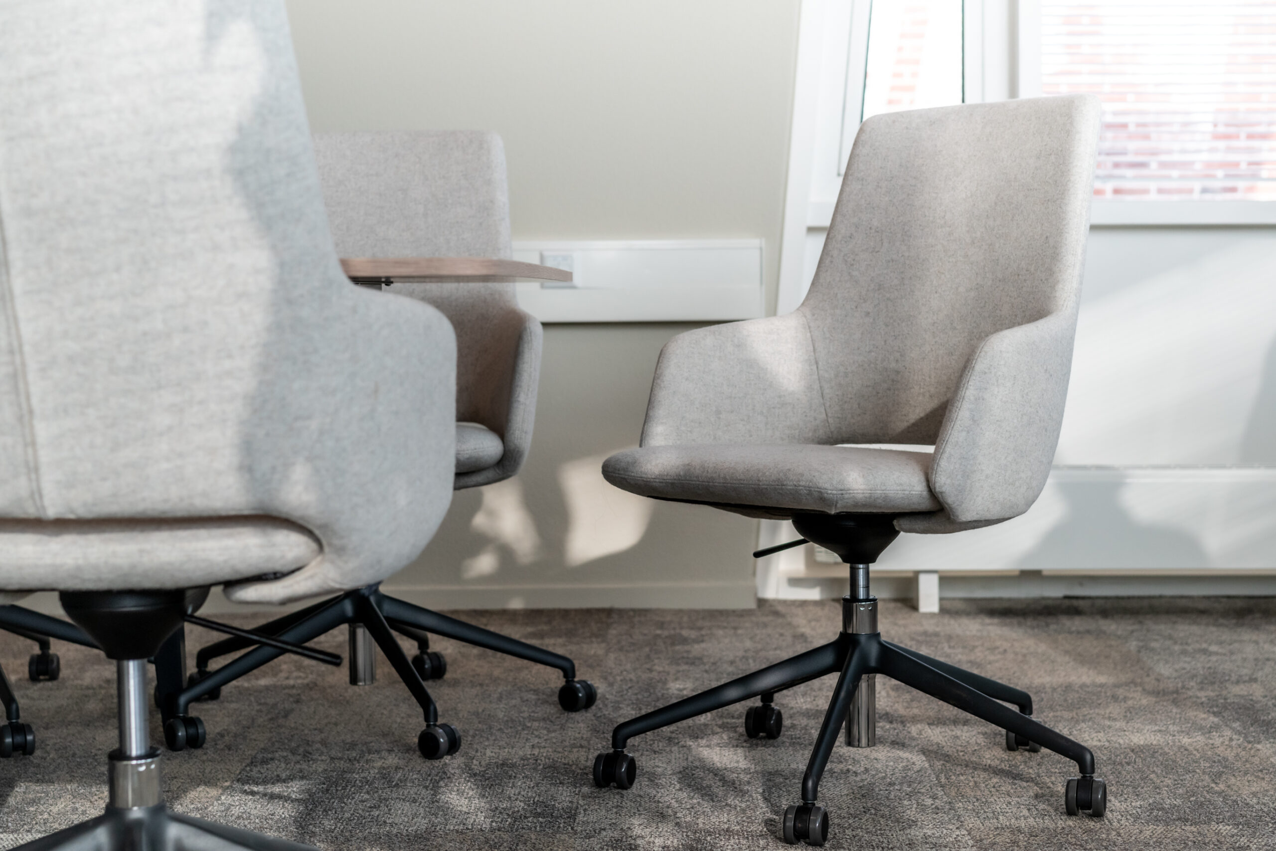In de bestuurskamer is gekozen voor de Jima stoel van Artifort. Deze elegante stoel combineert comfort met verfijnd design, perfect passend bij een representatieve ruimte. De vloeiende lijnen en hoogwaardige afwerking zorgen voor een moderne, professionele uitstraling. Artifort staat voor tijdloos Nederlands design waarin vorm en functionaliteit samenkomen.