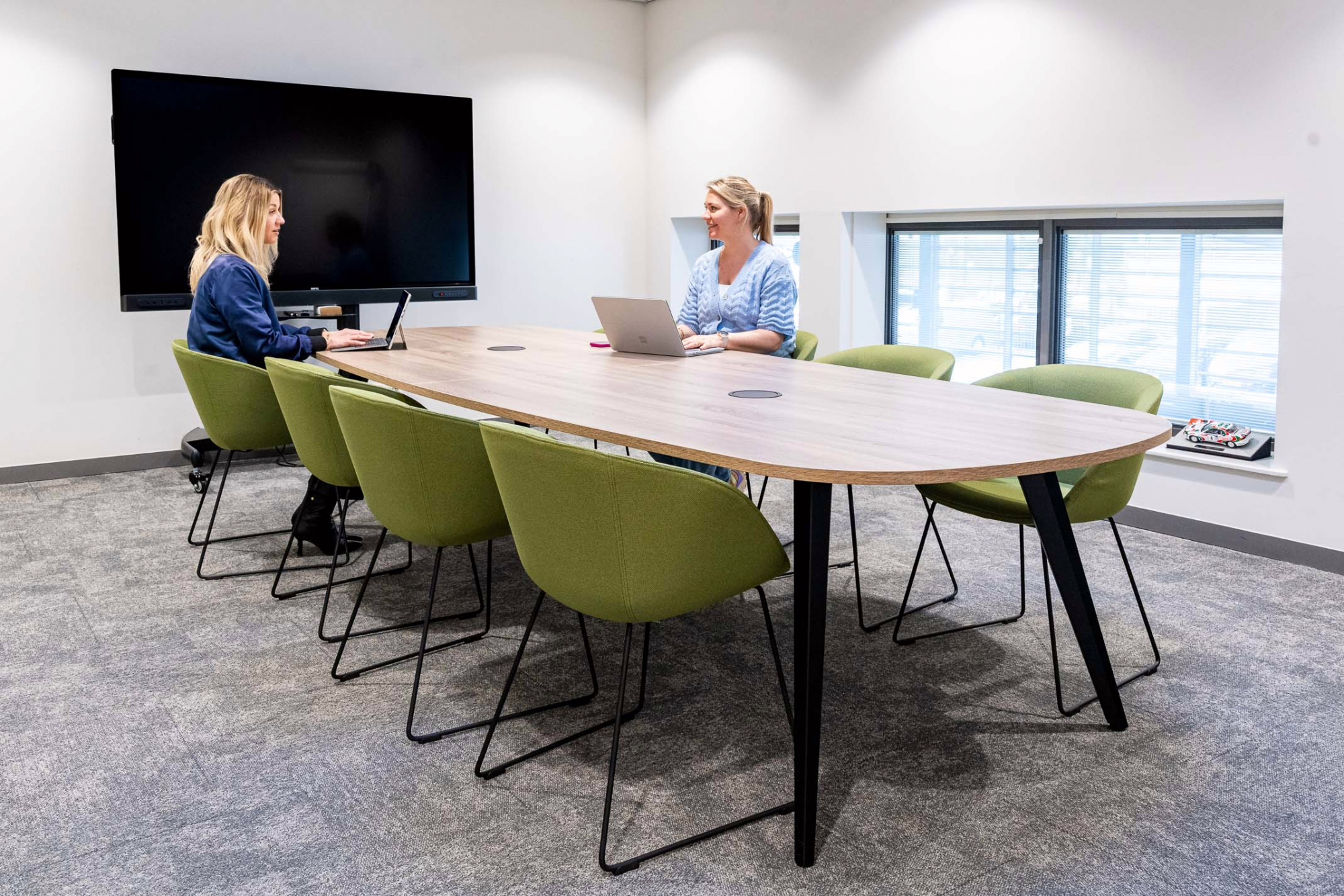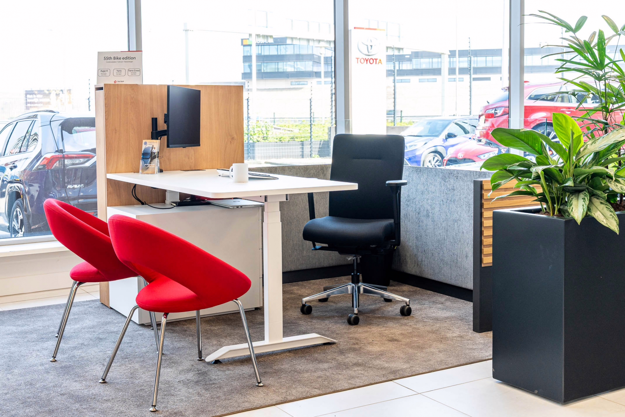 Voor zowel de saleskantoren, balies, vergaderruimten en kantine hebben we ervoor gezorgd dat het een geheel is geworden met de showroom.